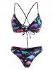 Dinosaur Print Crisscross Lace up Cheeky Bikini Swimwear