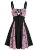 Christmas Snowflake Pattern Mesh Panel Sleeveless Lace up Dress