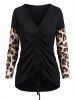 Leopard Sleeve Cinched Drop Shoulder Knitwear