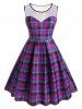 Plus Size Plaid Lace Insert Sleeveless Dress