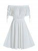 Off The Shoulder Drawstring Puff Sleeve Dress