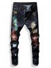 Colorful Paint Glitter Embroidered Ripped Jeans