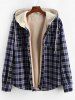 Plaid Chest Pocket Fleece Hooded Jacket