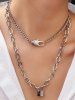 2Pcs Lock Pendant Chain Necklace Set