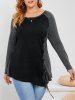 Plus Size Raglan Sleeve Lace Up Colorblock T Shirt