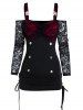 Floral Lace Cold Shoulder Buttons Drawstring Top