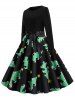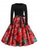 Christmas Tree Print Belted Long Sleeve Retro Dress