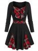 Plus Size Bowknot Plaid Panel Flare T Shirt