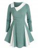 Plus Size Bicolor Godet Skew Collar A Line Tunic Sweater