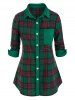 Plus Size Plaid Front Pocket Button Up Tunic Shirt