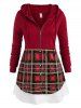 Plus Size Half Zipper Plaid Hooded Layered Top