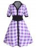 Contrast Collar Plaid Button Up Plus Size Shirt Dress