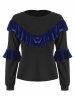 Velvet Panels Ruffles Crew Neck Sweatshirt
