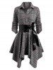 Plaid Belted Roll Tab Sleeve Handkerchief Dress