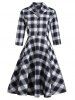 Vintage Mock Button Plaid Dress