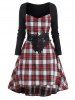 Guipure Panel Plaid Sweetheart Dip Hem Dress