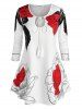Plus Size Flower Keyhole Tassel Tie Tunic Long Tee