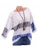 Plus Size Printed Drop Shoulder Roll Up Sleeve T Shirt