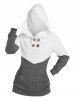 Two Tone Buttons Kangaroo Pocket Hoodie