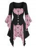Christmas Snowflake Print Lace up Handkerchief Twofer Dress
