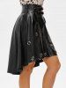 Punk Lace Up Grommets High Low Faux Leather Skirt