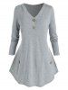 Plus Size Patch Pocket Curved Hem Long Sleeve Tee