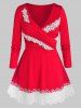 Plus Size Surplice Guipure Lace Ruched A Line Tee