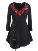 Lace Up Floral Embroidered Patched Plus Size Skirted Top