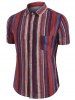 Colorful Vertical Striped Pocket Button Up Linen Shirt