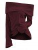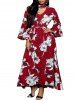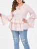 Plus Size Lace Hem Lace Up Flare Sleeves Frill Blouse