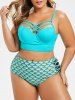 Plus Size Criss Cross Scale Print Mermaid Push Up Bikini Swimsuit