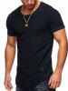 Solid Color Pleated Sleeve Curved Hem T shirt