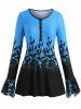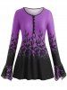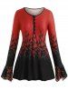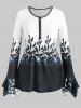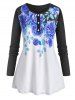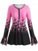 Plus Size Bell Sleeve Half Button Floral Print Tee
