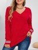 Plus Size Striped Cuffs Diamond Design Tunic Sweater