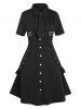 Plus Size Buckles Eyelash Button Up Cargo Dress