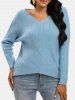 Drop Shoulder Textured V Neck Sweater