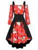 Plus Size Christmas Snowflake Snowman Dress with Long Waistcoat Set