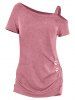 Skew Neck Mock Button Raglan Sleeve T shirt