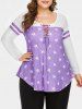 Plus Size Stars Print Lace Up Curved Tee