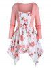 Plus Size Button 2 In 1 Flower Print A Line T shirt