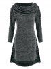 Plus Size Cinched Foldover Lace Up Heathered Knitwear