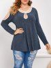 Plus Size Keyhole Cold Shoulder Contrast Trim Knitted T Shirt