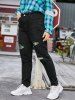 Contrast Distressed Raw Hem Plus Size Tapered Jeans