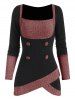 Square Collar Rib knit Panel Asymmetrical Long Sleeve Top