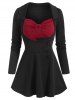 Sweetheart Neck Colorblock Long Sleeve Top