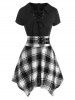 Lace Up Plaid Buckle Embellished Handkerchief Dress