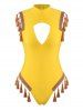 Tape Trim Tassel Cutout High Neck One piece Swimsuit