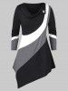 Plus Size Asymmetric Cowl Neck Colorblock T Shirt