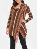 Cowl Neck Asymmetrical Fringe Striped Cardigan