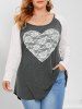 Plus Size Heart Lace Raglan Sleeve T Shirt